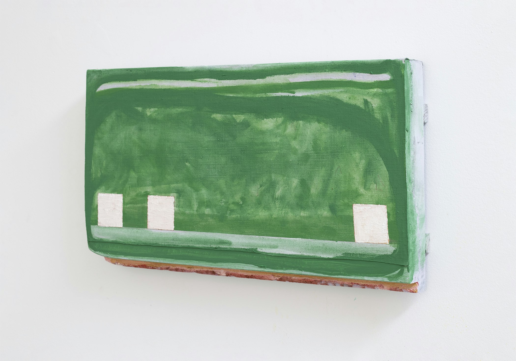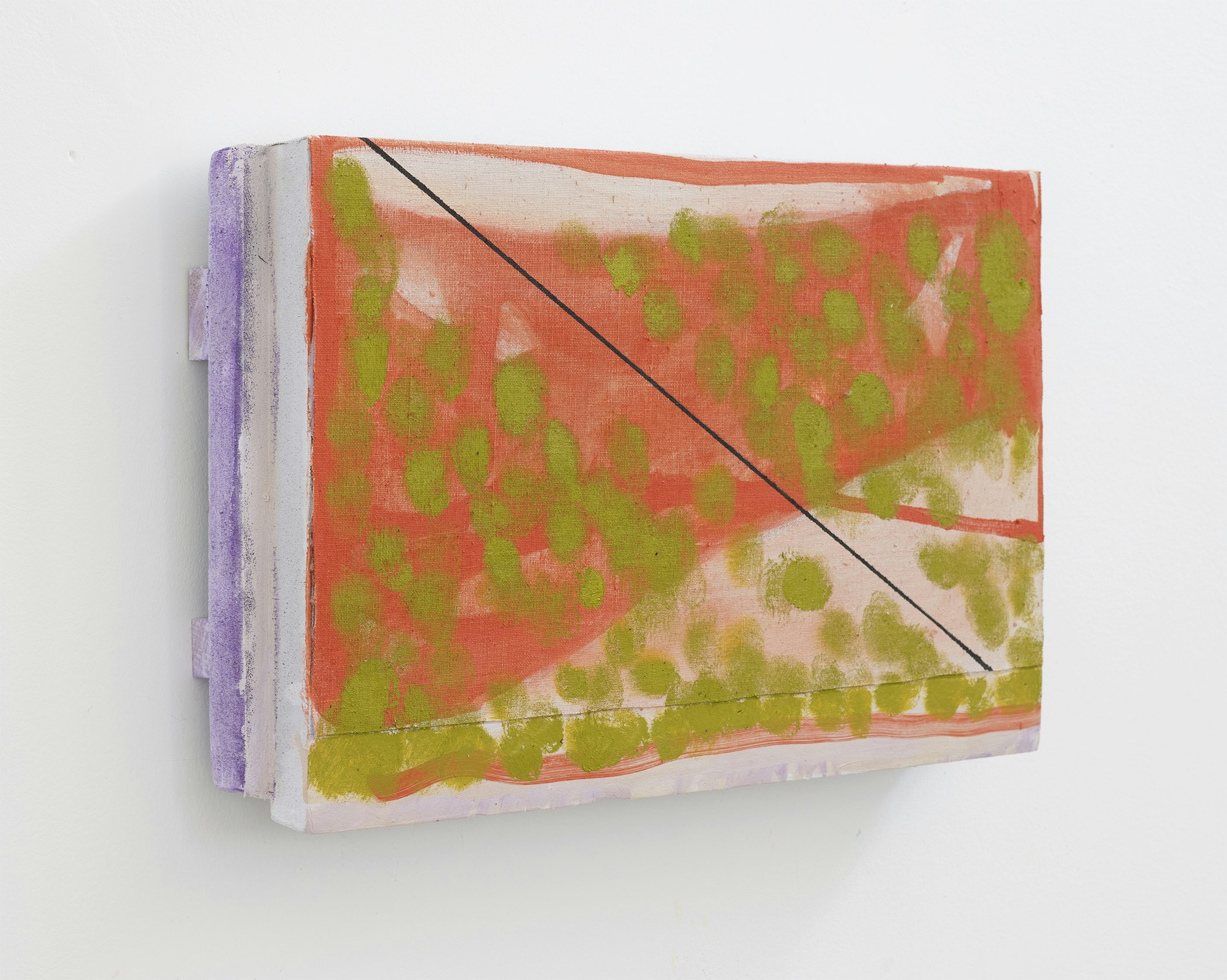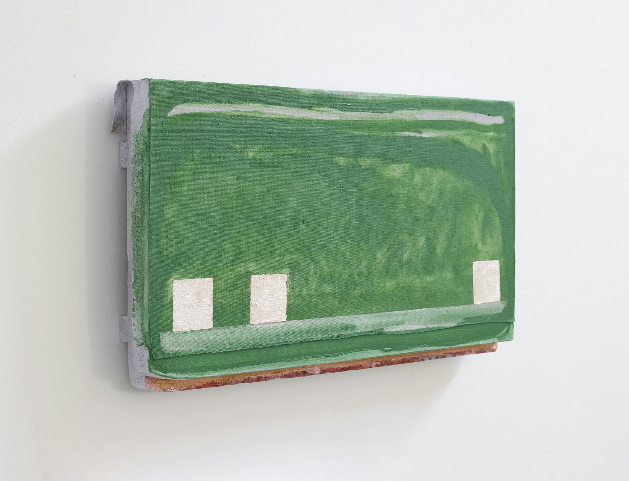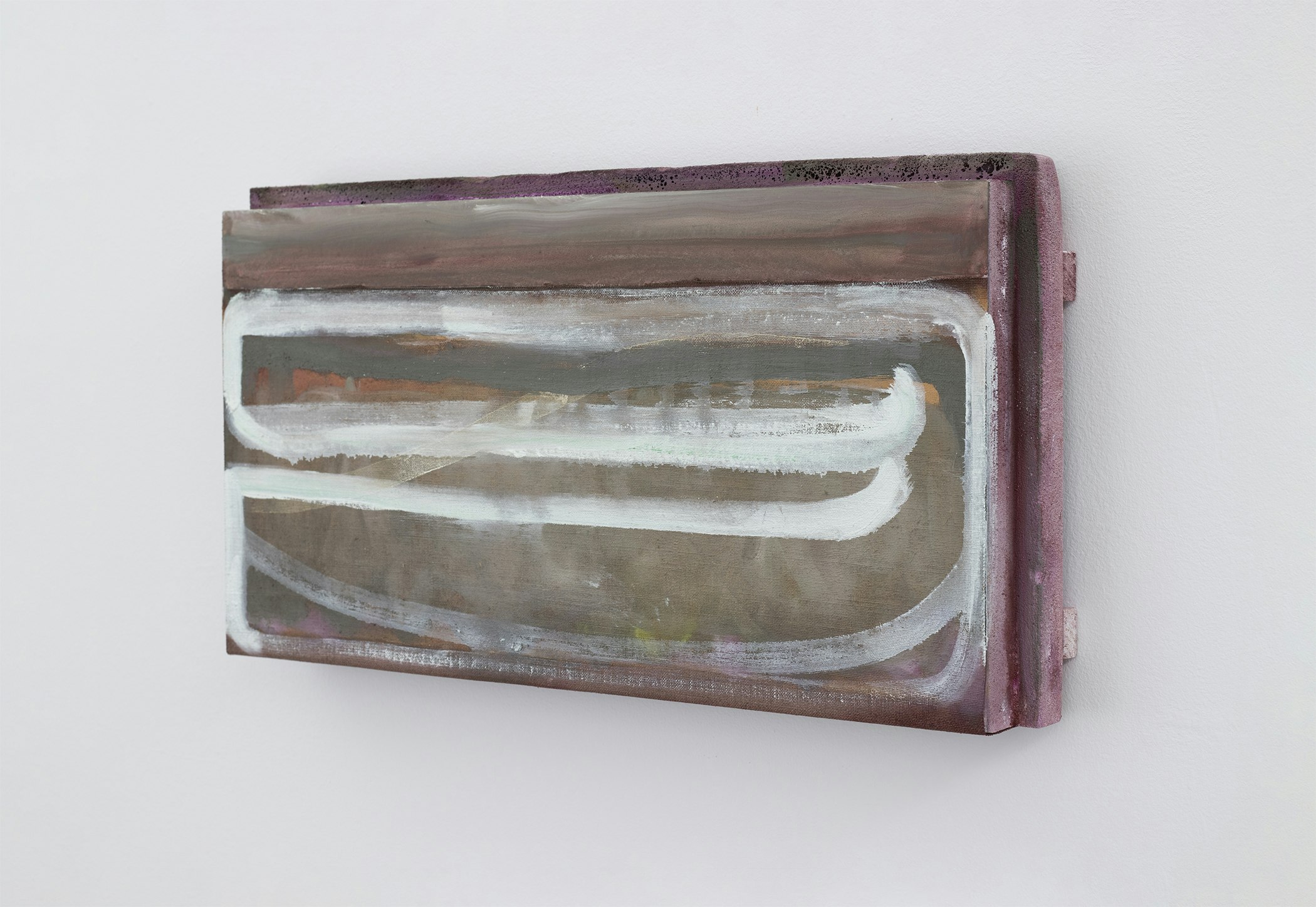 Abodes - Relay, 2022, gesso, acrylic and oil paint on linen, PUR board and wood, 31 x 61 x 7 cm.