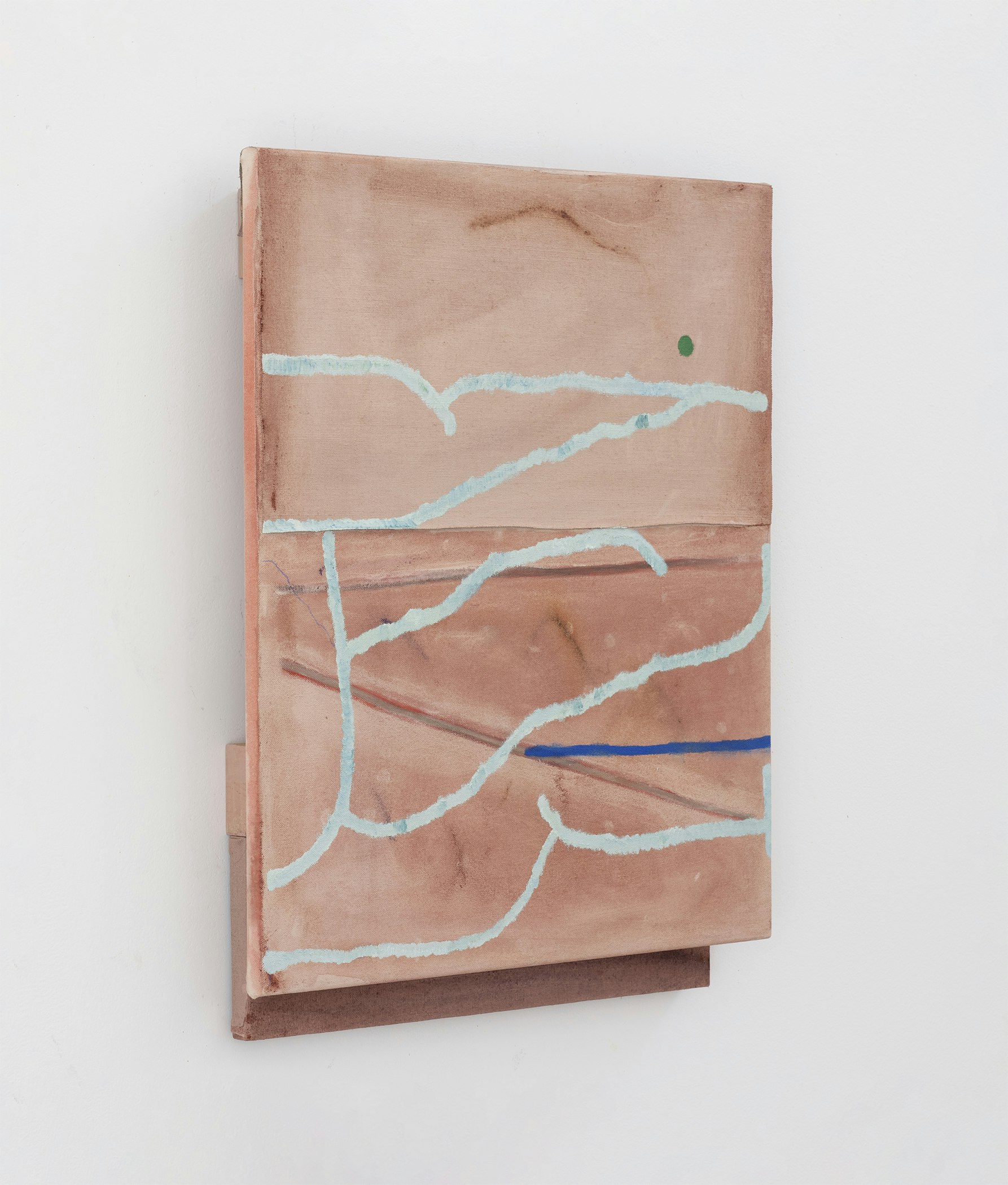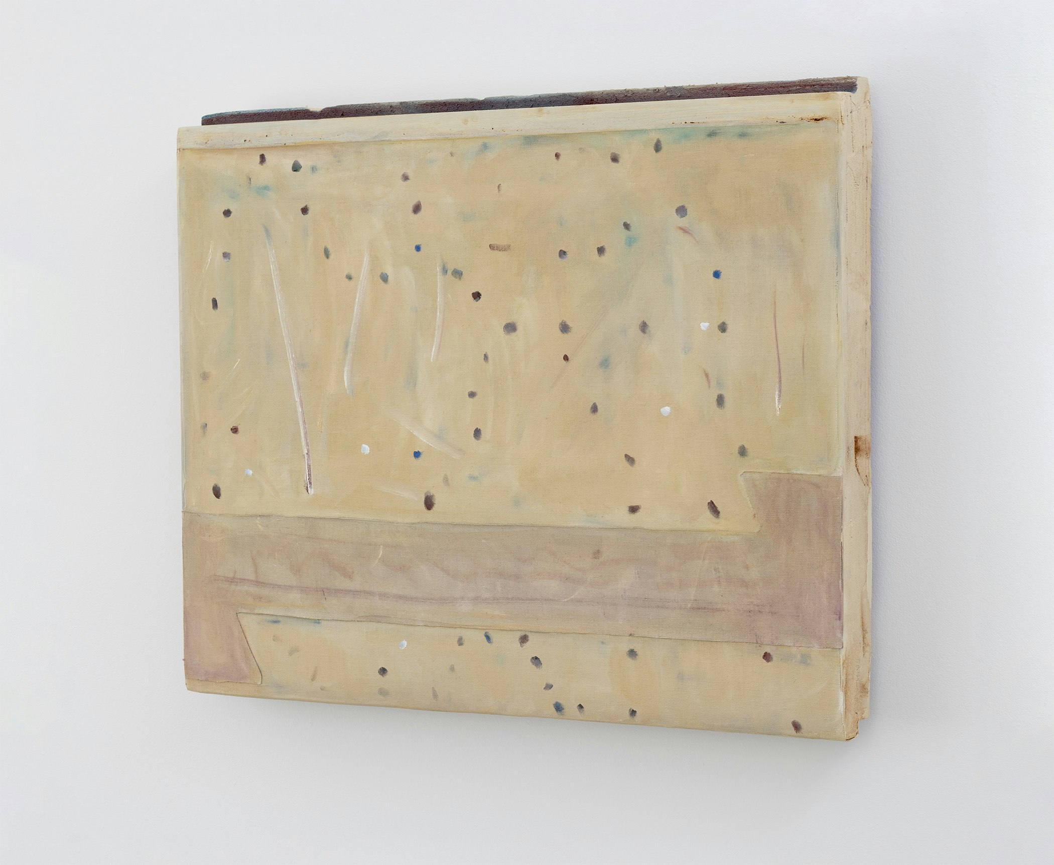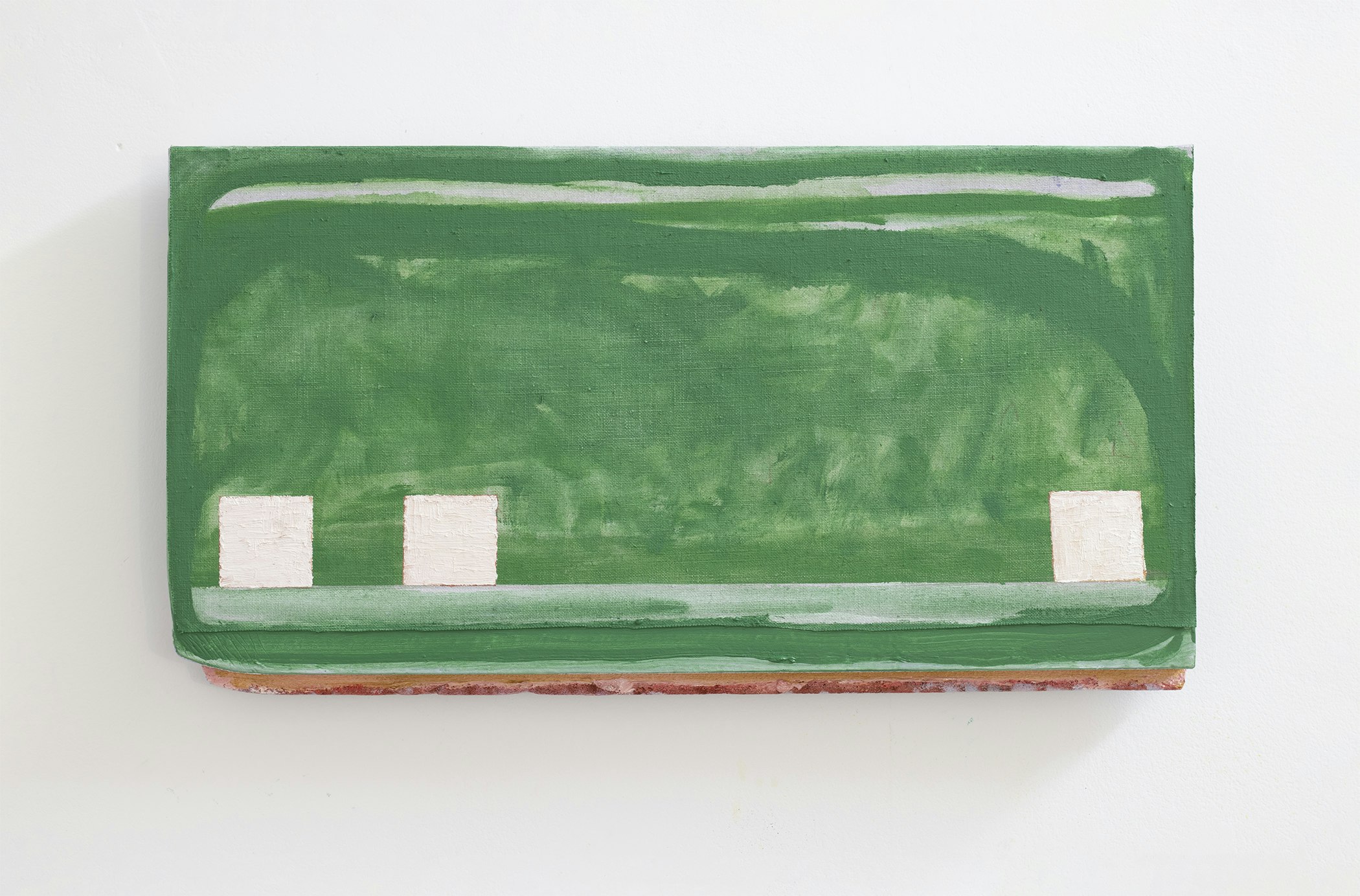 Abodes - Relay, 2022, gesso, acrylic and oil paint on linen, PUR board and wood, 31 x 61 x 7 cm.