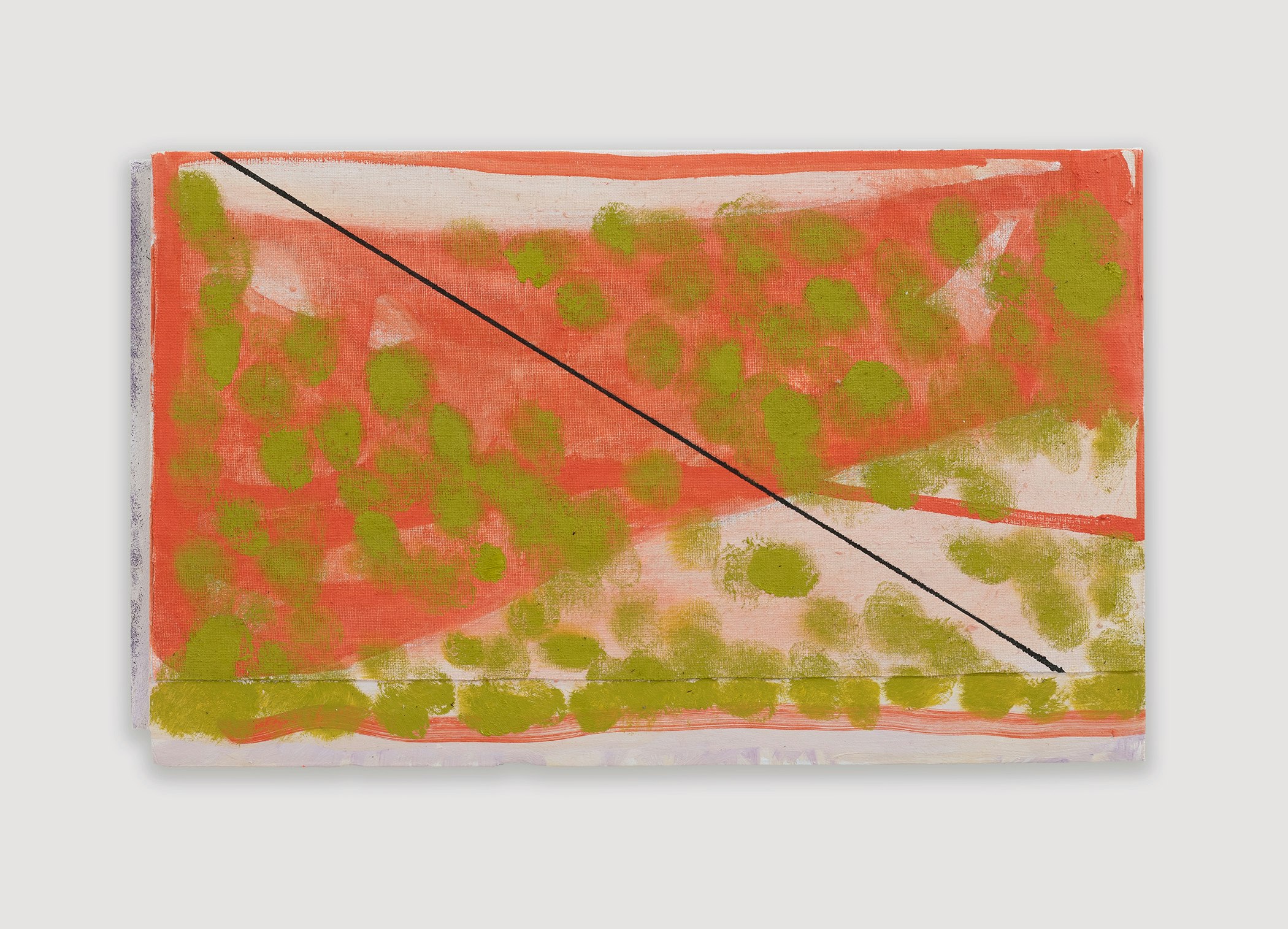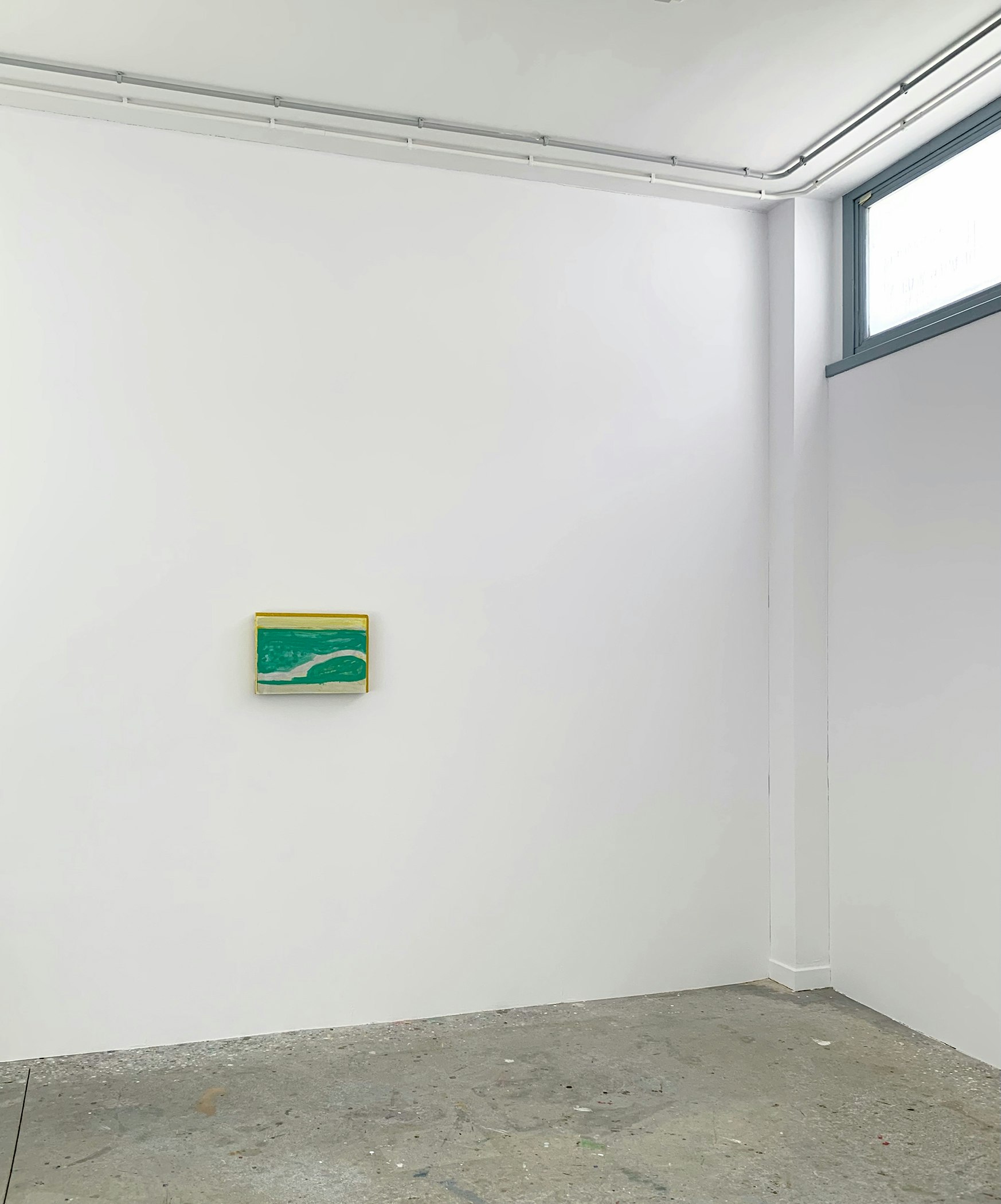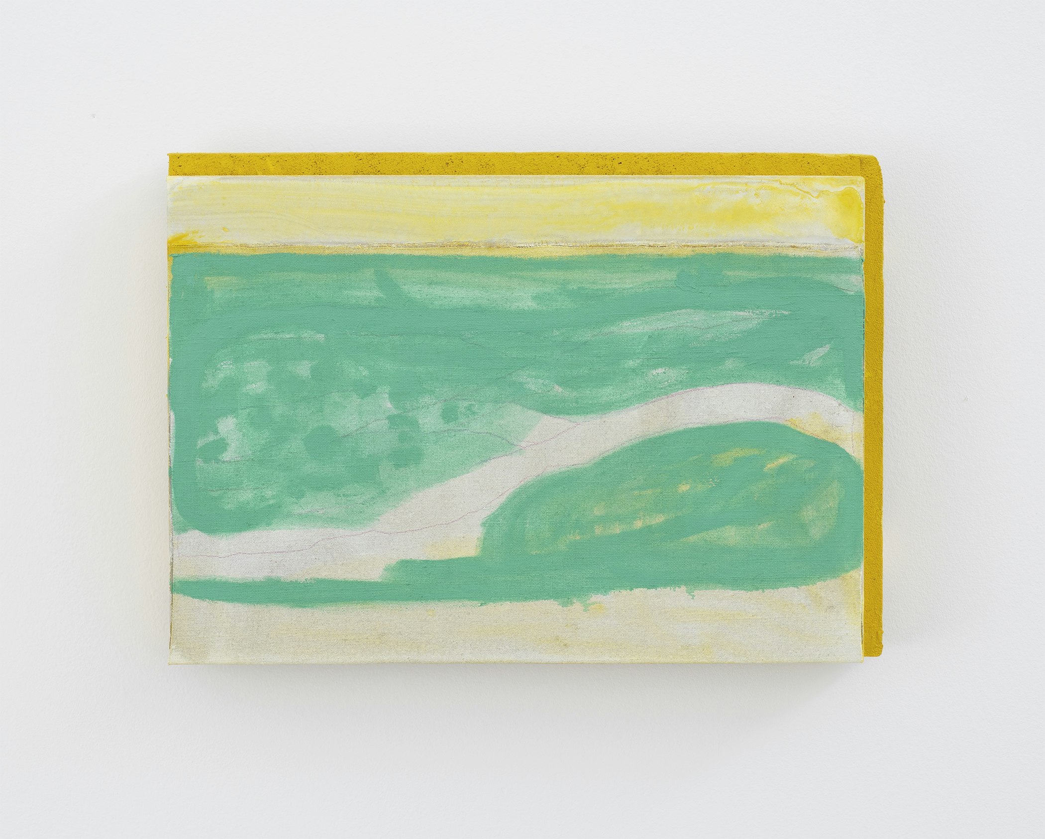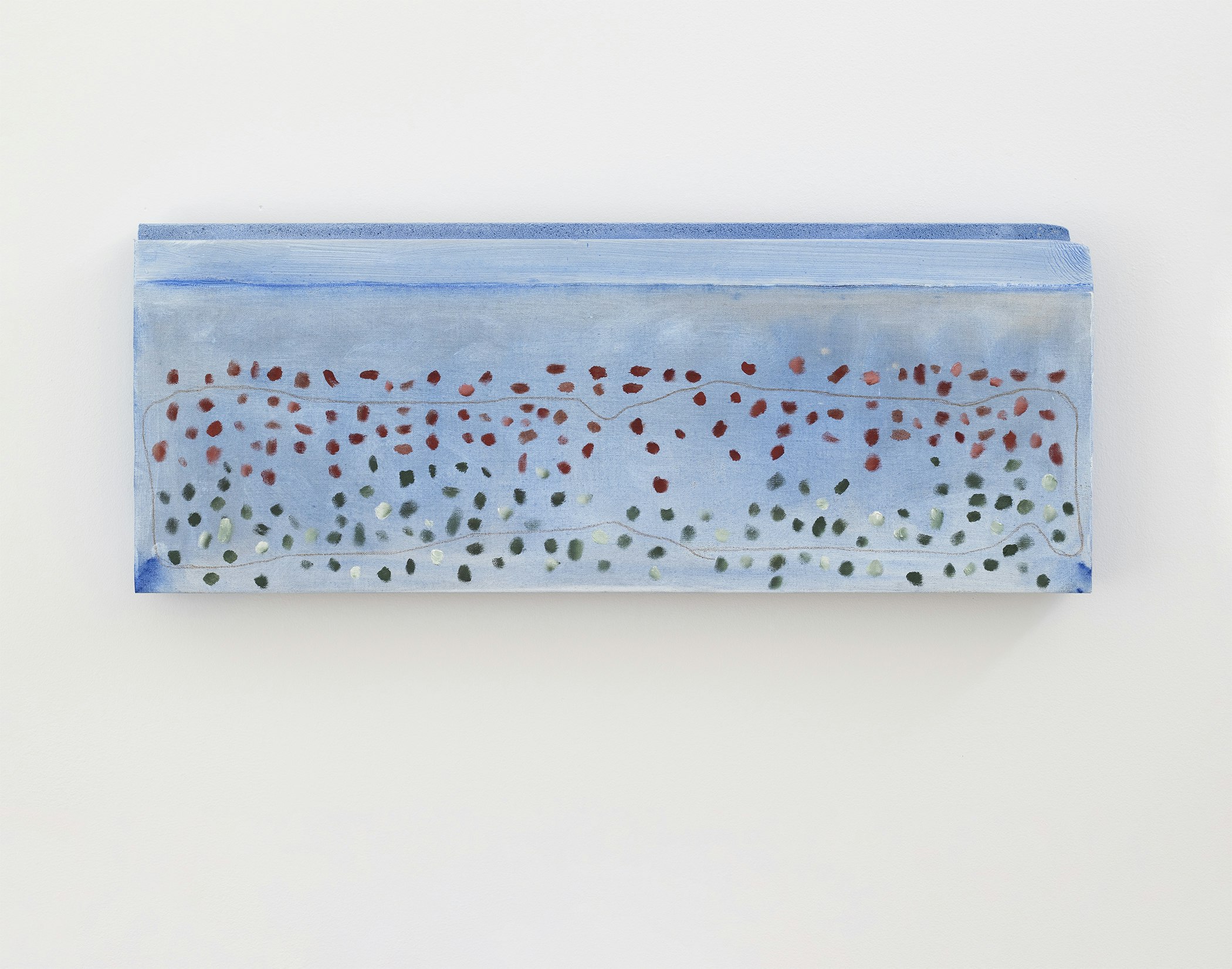 Abodes - Relay, 2022, gesso, acrylic and oil paint on linen, PUR board and wood, 31 x 61 x 7 cm.