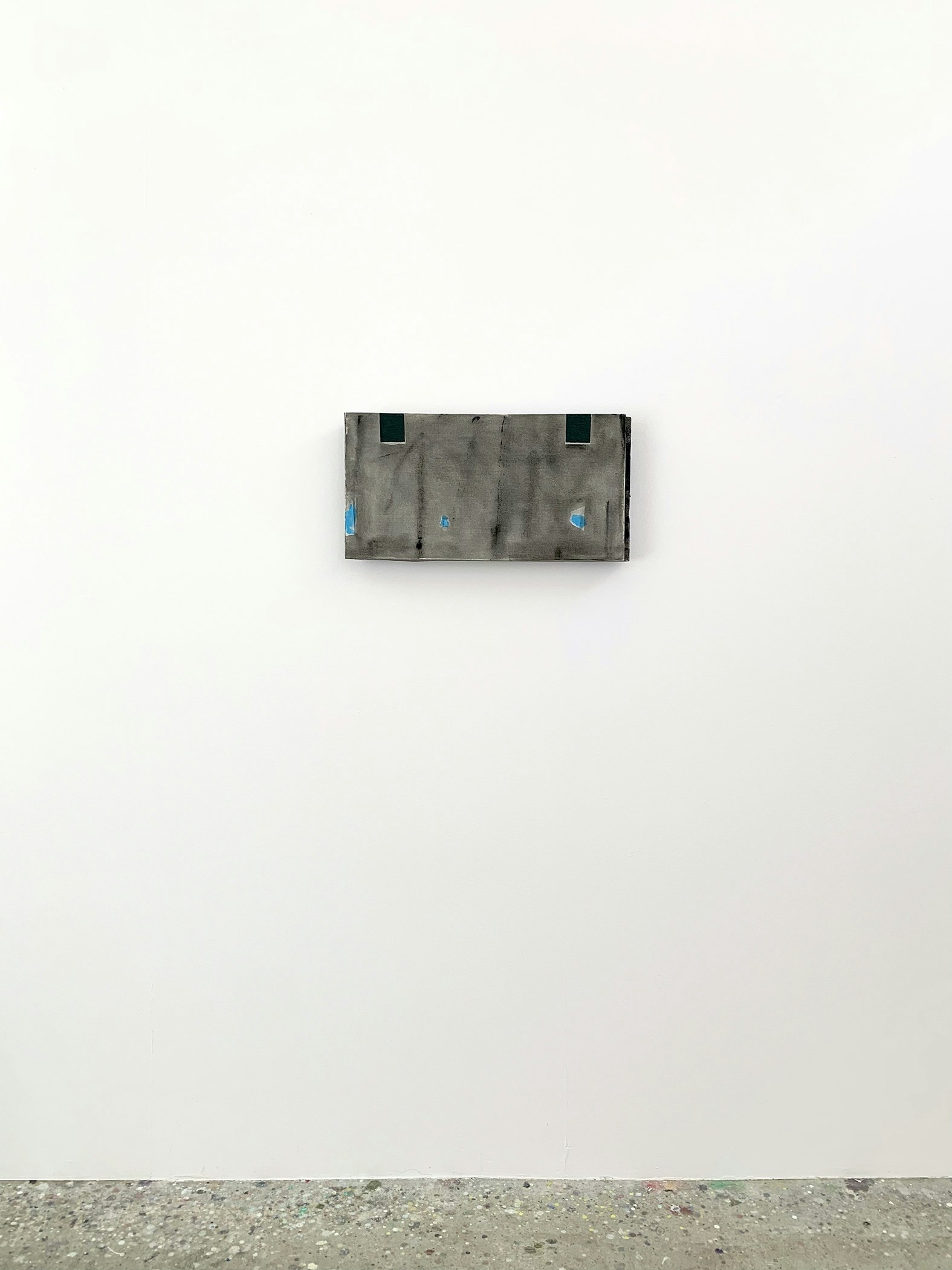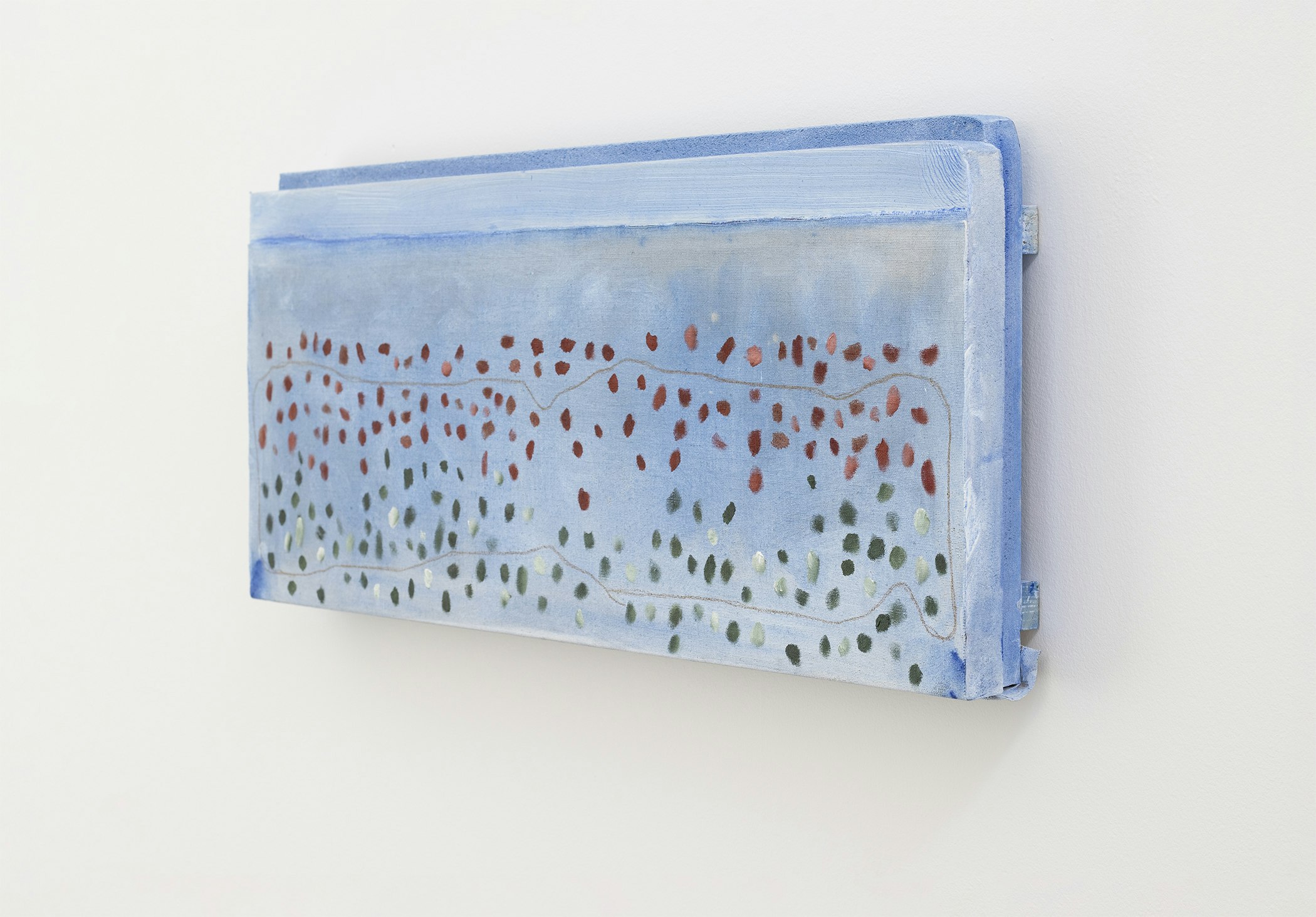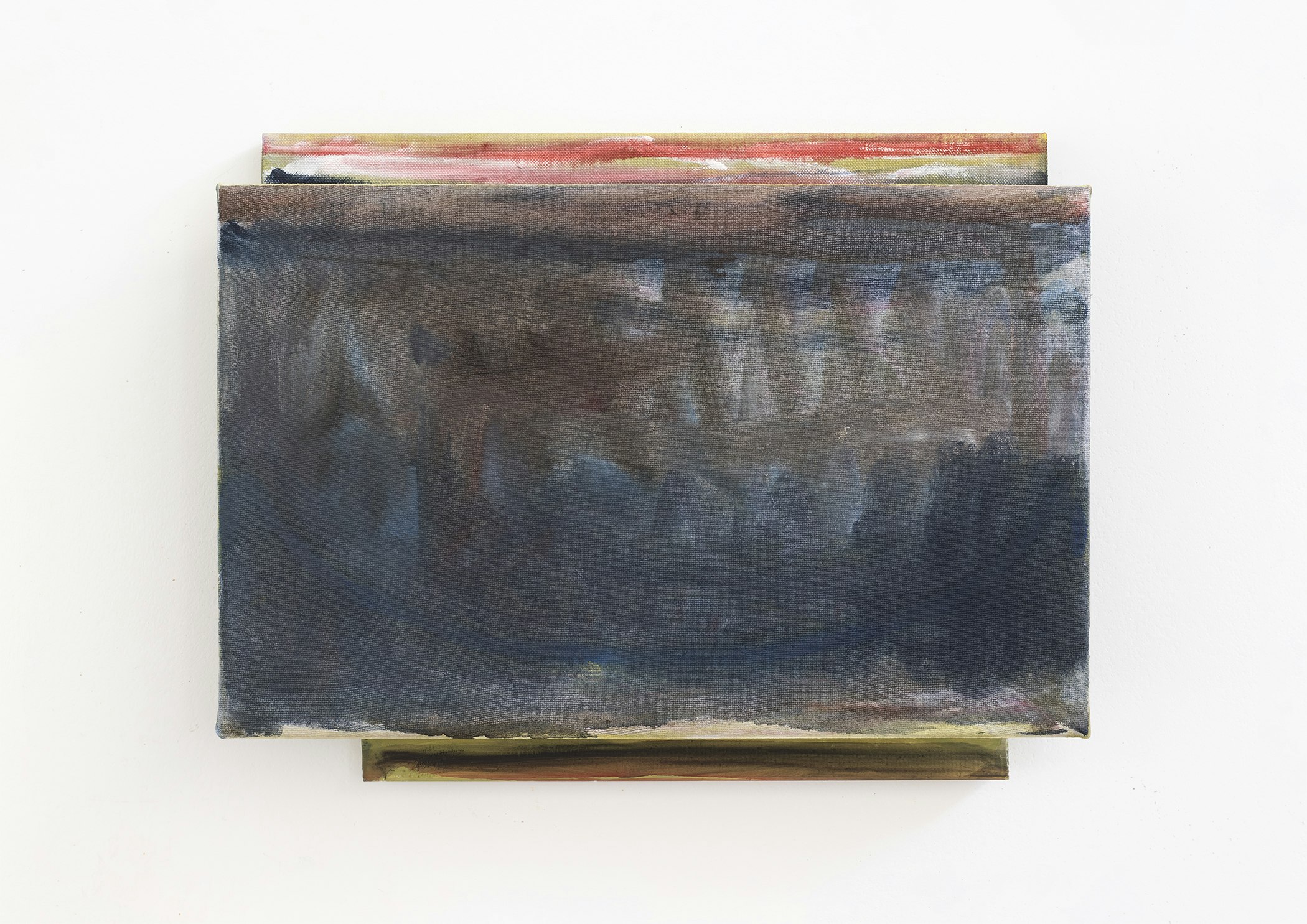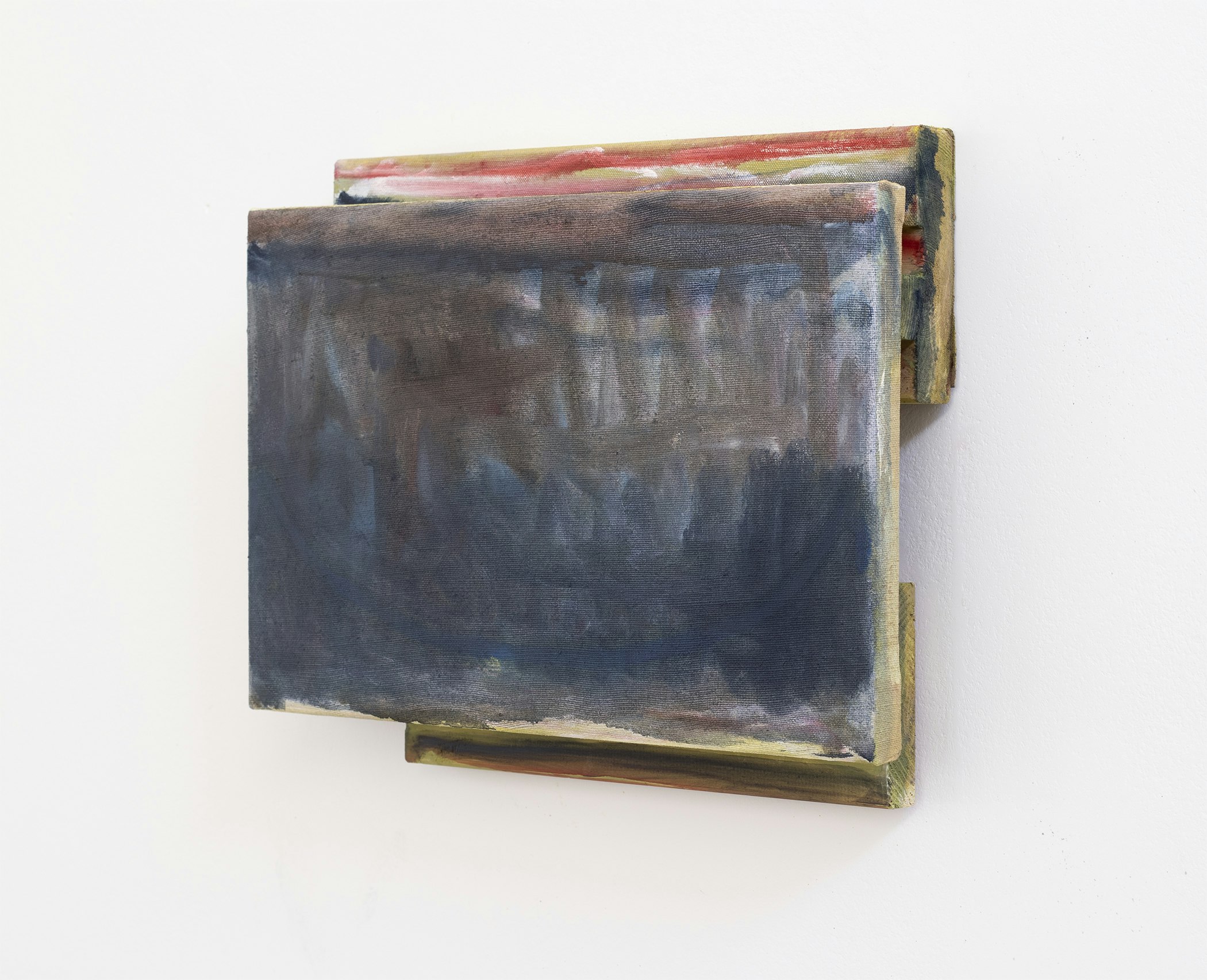 Abodes - Unfolding, 2022 - 2023, acrylic and oil paint on linen, PUR board and wood, 29 x 57 x 7 cm.