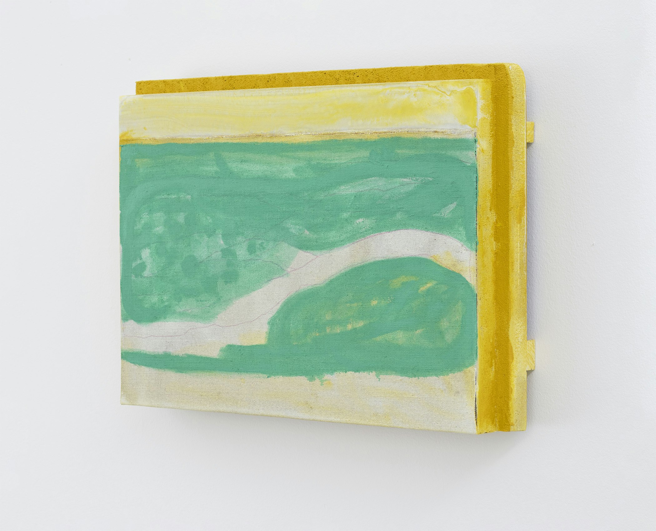 Abodes - Enclosure, 2022, acrylic and oil paint on linen, PUR board and wood, 30 x 51 x 7 cm.