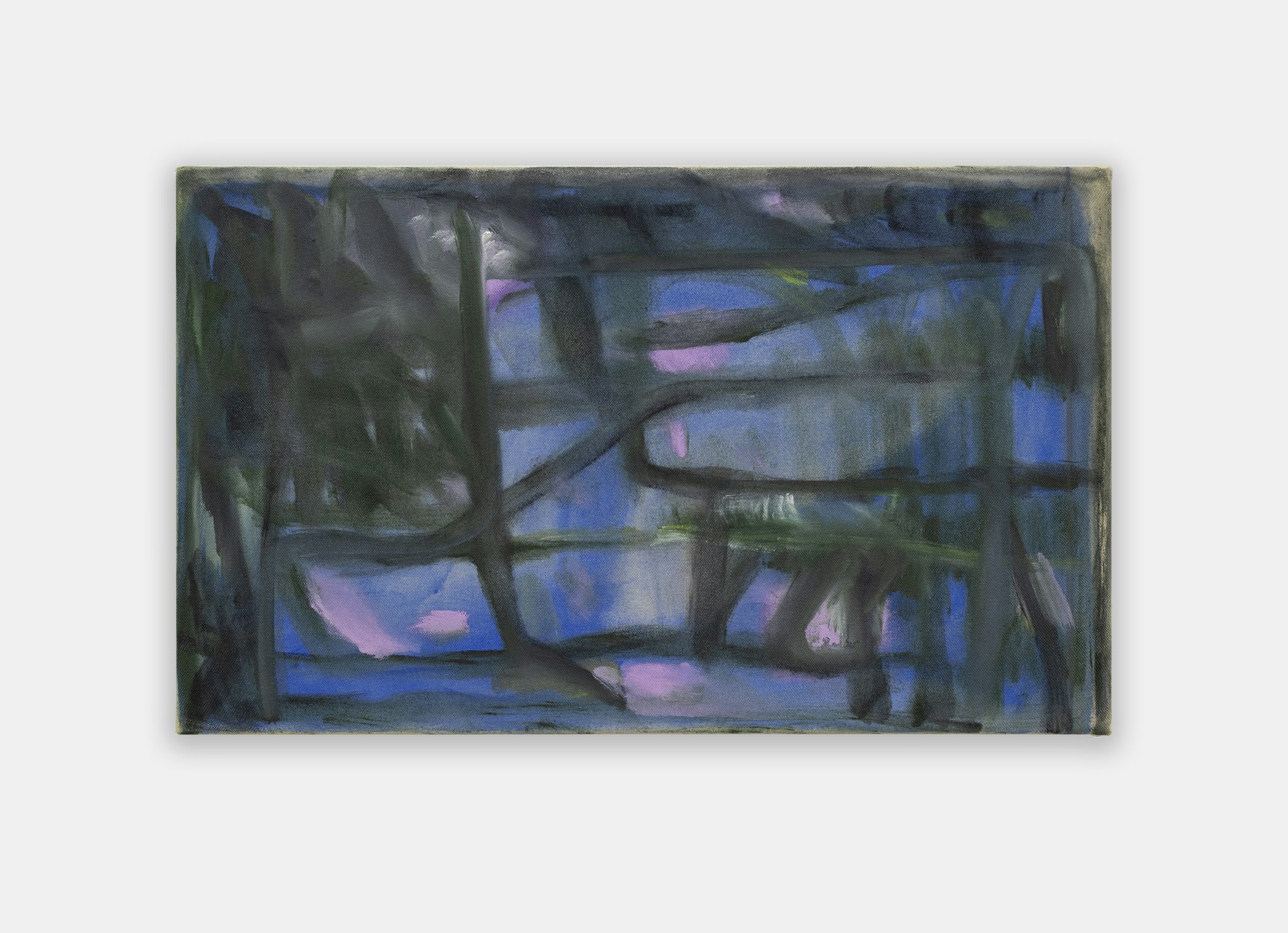 Abodes - Night Moves, 2022, acrylic and oil paint on linen, PUR board and wood, 35 x 61 x 6.5 cm.